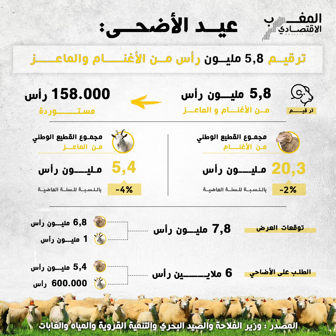 عيد الأضحى .. هذه وضعية القطيع الوطني 2024 المغرب الاقتصادي الخميس, 6 يونيو 2024, 22:32شارك هذا الموضوع:انقر للمشاركة على فيسبوك (فتح في نافذة جديدة)النقر للمشاركة على X (فتح في نافذة جديدة)انقر للمشاركة على Telegram (فتح في نافذة جديدة)انقر للمشاركة على WhatsApp (فتح في نافذة جديدة)معجب بهذه:إعجاب تحميل... إنفوغرافيك 0 تعليقاتأترك تعليقا إلغاء الرد احفظ اسمي، بريدي الإلكتروني، والموقع الإلكتروني في هذا المتصفح لاستخدامها المرة المقبلة في تعليقي.